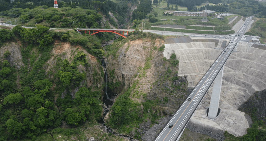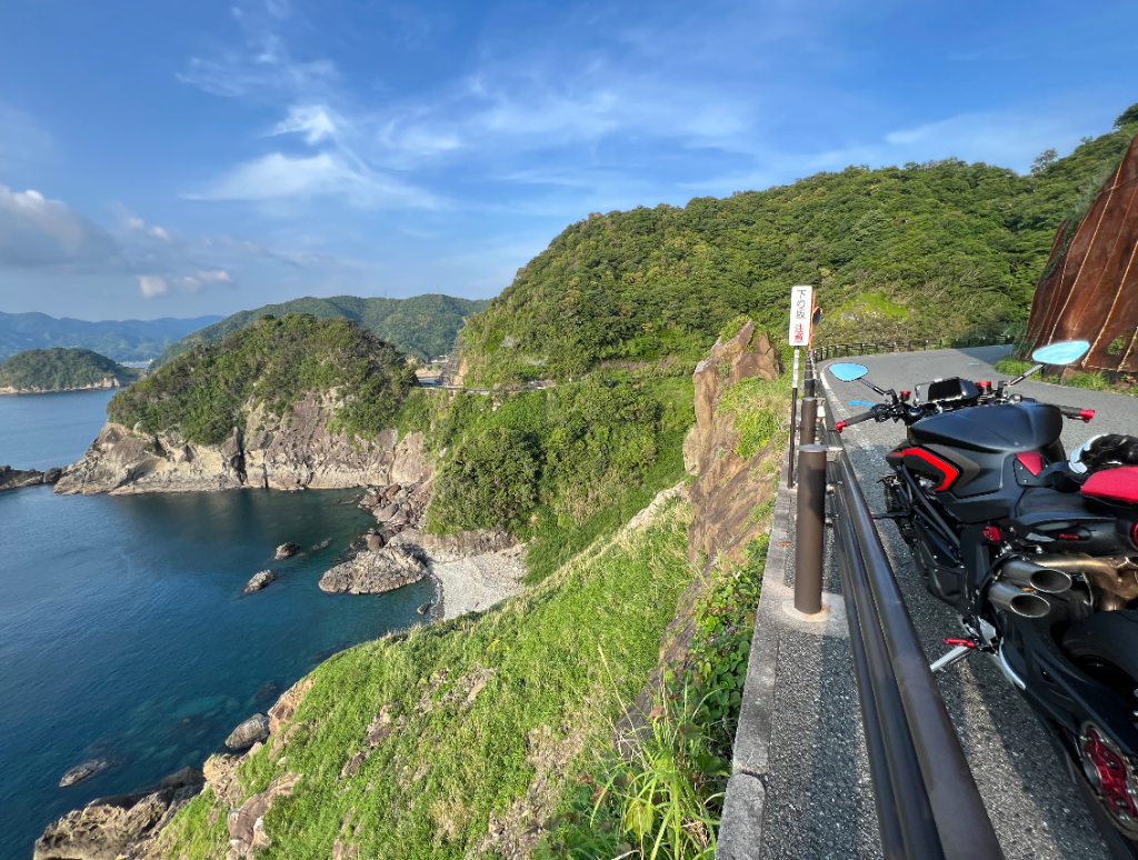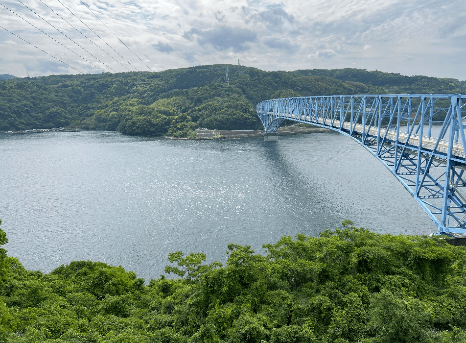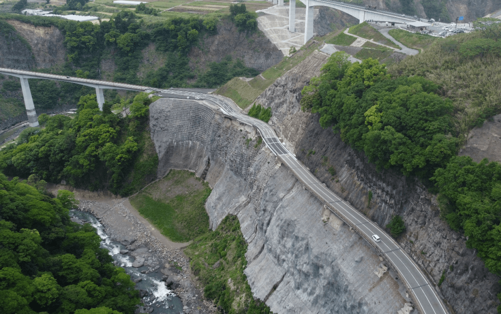 だこ汁やで次回コーヒ無料券をもらって、前回と異なって人の多い阿蘇に向かう、途中すごい絶景の橋があって、観光地登録されてなかったけど、びっくり道が崖に張り付いてた。