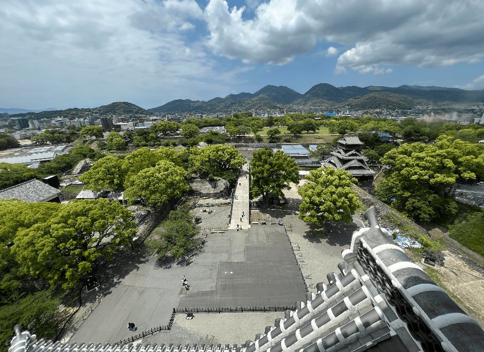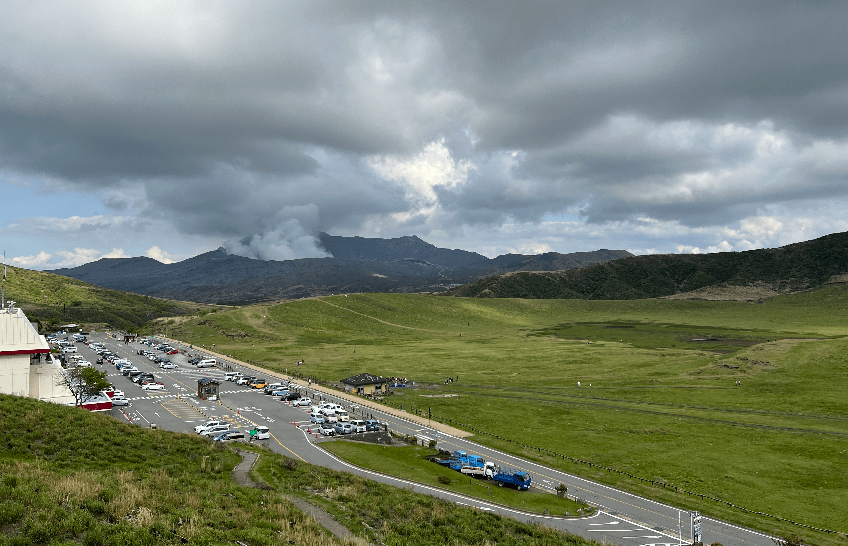 何だかgwというのに人が少ない、コロナ開けてるのに謎だ、中に入るとコンクリート製でがっくし最低。無駄な制振部材が随所に入っているし、木材なんて全く見当たらない、SRCのビルみたいだ。最低。でも天守閣から見る景色は圧巻でやっぱり天下人は高いところが好きなんだろうな、それは今でも変わらない人間の本能なのかもしれない。 そんなつまらない熊本城はそそくさ退散して、途中感じのいい女将がいるだこ汁を食べて阿蘇に向かうことにした。