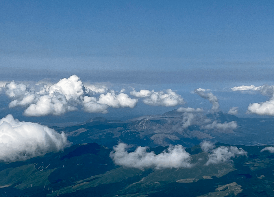 さて絶景も見れたし、空港に行くとしよう、ローカル空港の物産やらレストランが楽しみだななんて思ったけど、何とプレハブ最低。全然楽しくないローカル空港を堪能して飛行機に乗り込んで窓から見える阿蘇を望めば、あっという間に別府を超えて四国、伊良部岬 駿河湾 そしてゴミゴミ雑踏東京だ。羽田は曇りで九州とは大違いどんより汚い。こんなところに高い金額を出して住むのが気が知れないとは思うけど、ステータスなのだろうか? 空いてる高速を走れば1時間で緑の多い自宅でほっと一息、お疲れ様でした。