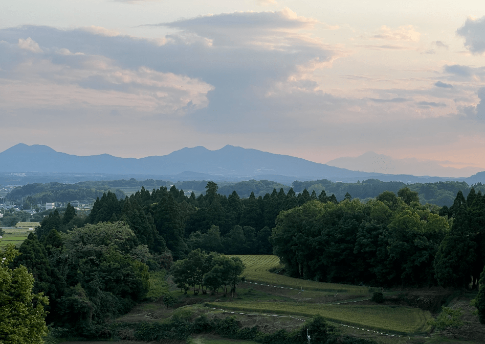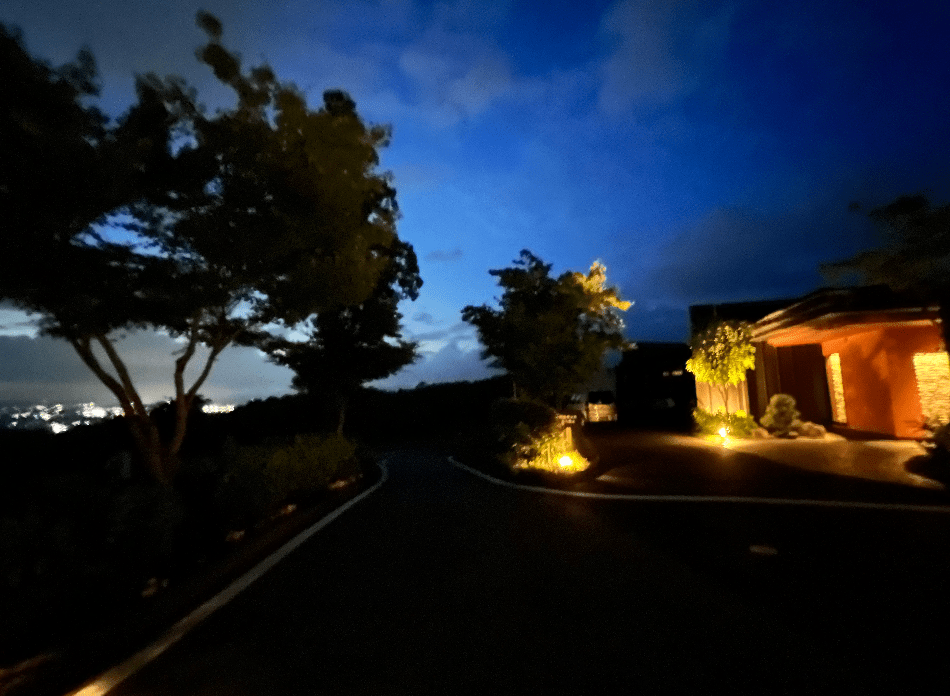 美味しい食事を堪能して、ほろ酔い気分で山の頂上にあるレストランを出れば熊本の夜景が圧巻だ。散歩しながら宿に戻って爆睡したら最終日の朝になった。美味しい朝食を山の頂上レストランで食べてると会長参上!久しぶりに色々話してバナナ園を散策、珍しいバナナの花も見れたし、又もお見上げもらってチェックアウト、また来ます!