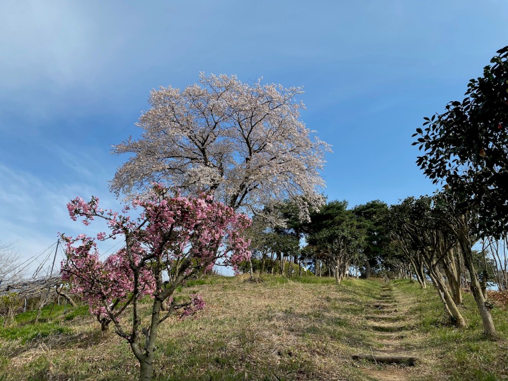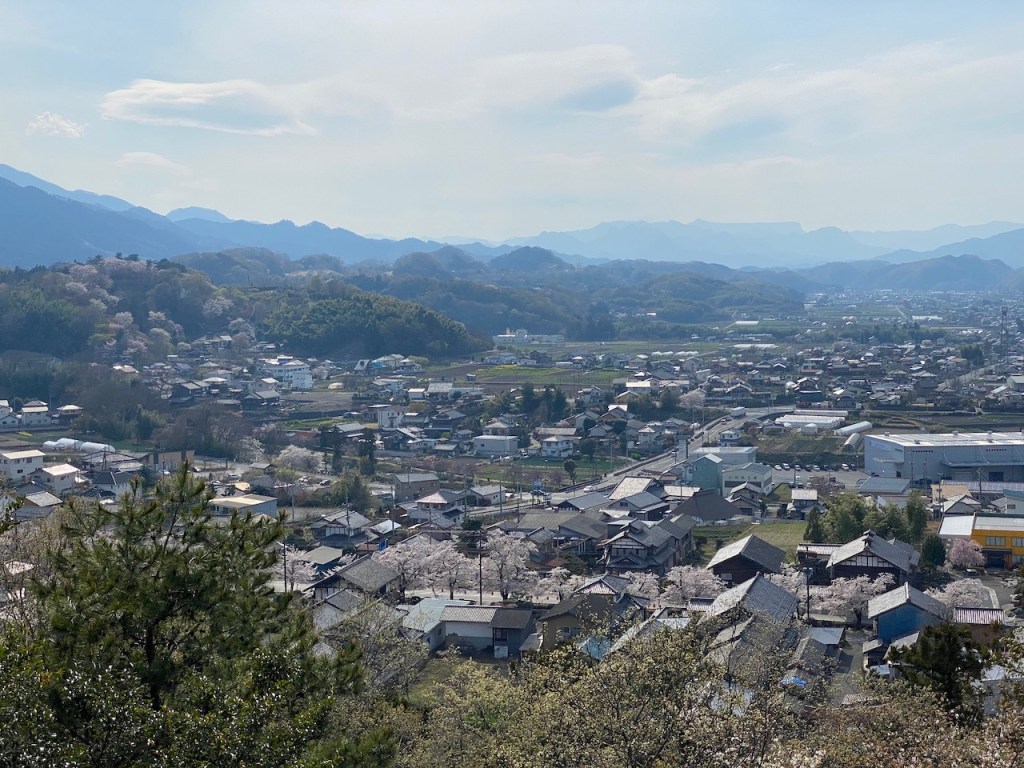 山を登るとこんな景色が広がる、どこでも桜はシンボルとなり人々の営みを見守って来た。この時期は本当に素晴らしい、秋の紅葉もいいが、新緑と色取り取りの花が生命の営みを感じさせる。紅葉にはそれが無い。