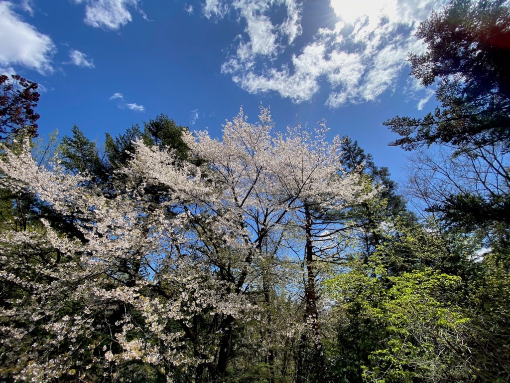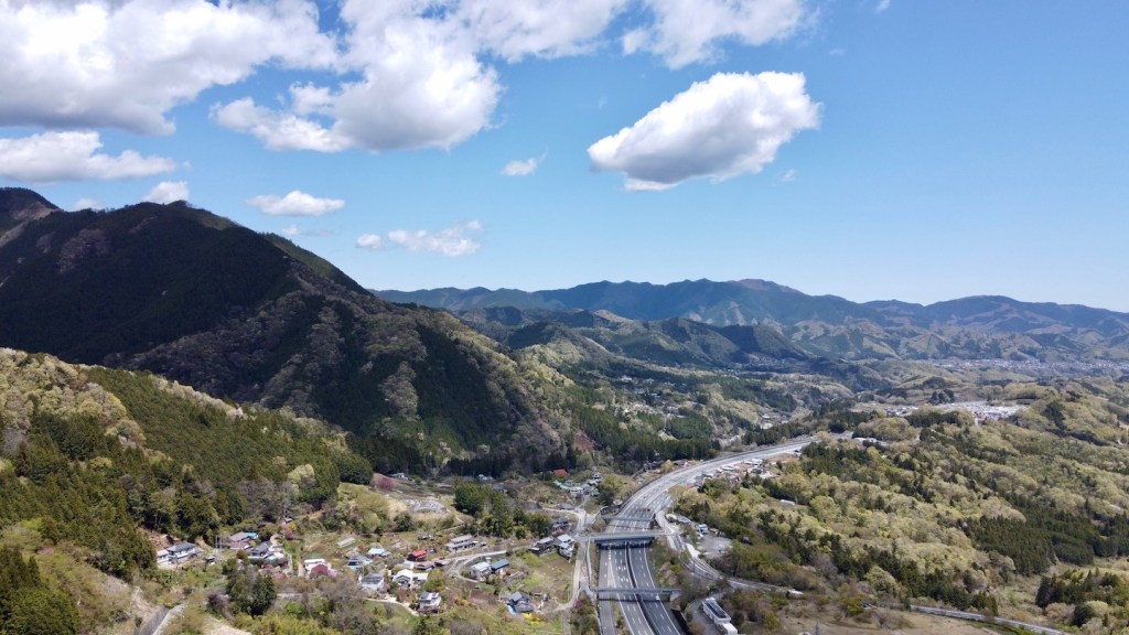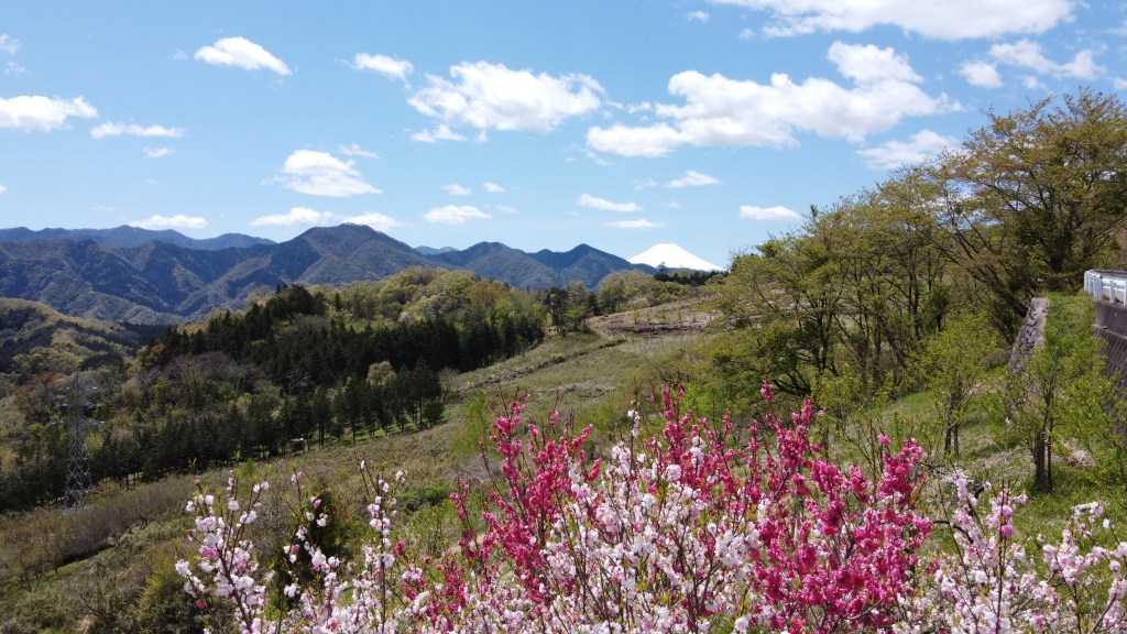 なんだか戻ってきた。ドローンも車も珍しいらしい。ここではコロナの話は無い。ドローンから送られてくる画像は車の殆ど走っていない高速とサービスエリアだ、いつもは数珠つなぎのこの道も閑散としている。平和だ。 小腹も空いたので先を急ごう。途中気になる小山がある。昔富士山信仰で出来た山だろうか、そこに素晴らしい桜も咲いていた。 本当に桜は素晴らしい。