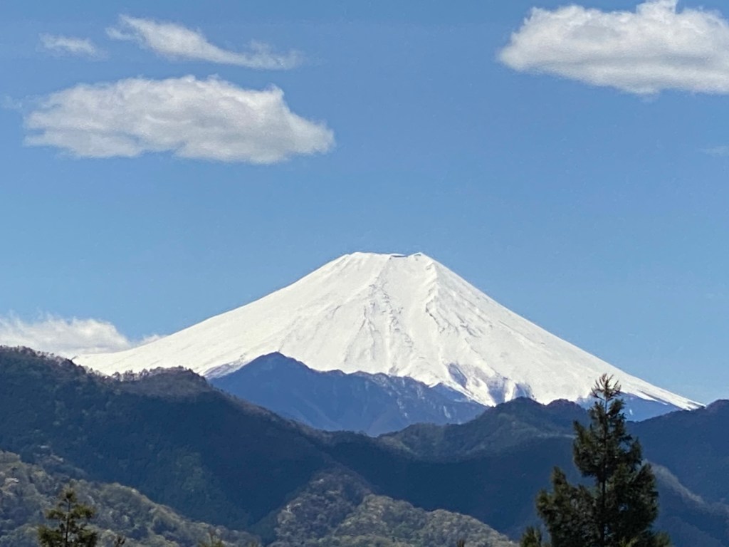 行き先はどうしよう。とりあえず旨い蕎麦を食べに行くかという不要な目的で出たが、こう天気がよくて道が空いてると、欲が出る。 そうだぐるっと一周ワインディング三昧にしよう! コースが決まれば気も楽だ。ともすればインターに到着、いつもより早い。下道に降りていつものお気に入りの道からスタートすると、途中いくつかの宿場町を抜ける。人気のないこの道も江戸時代は沢山の人が通っていたかと思うと感慨深いものがある。少しすると、見晴らし展望台だ。ここから見る富士山は控えめで大好きだ、いつも人が居ないのも良い。