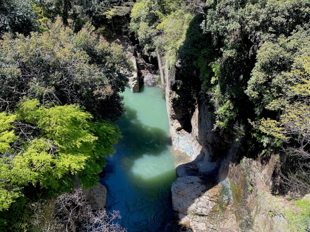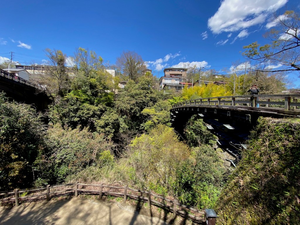 誰もいないがここは何時も通りだ、ほっとする。クセになる天ぷら蕎麦を食べて、橋を渡る、ここに来たら日本三大奇矯の猿橋を渡らないという事はない、珍しい橋だが人気がなくサイクリストが居るくらいだ。下を見ると渓谷が見える。なぜこんな所に橋を作ったのかは謎だが、どうやら戦国時代の戦略的な橋だったようだ。
