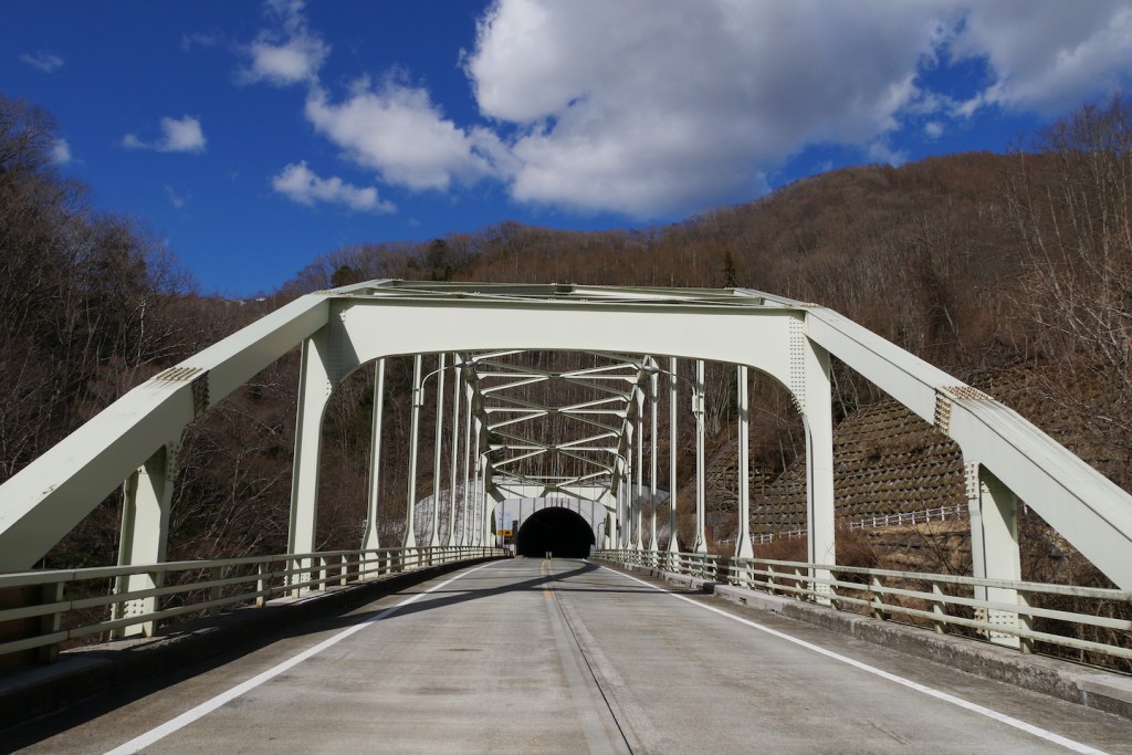 トンネルを抜けると全くもって人気の無い谷に出る。そこから見る景色は絶景で遠く大きいアーチ橋が見え、とても関東とは思えない深山の景色を味わえる。交通量の全く無い道を走ると所々がけ崩れの為規制があるが、ガードマンが立っており、心強い。コロナでもここではちゃんと雇用されている。 ゼネコンがストップすればこう行った労働者も職を失う。田舎の人が現金を稼ぐ手段の一つだし、こんな田舎でも工事が減れば収入も減って大変だと思う。