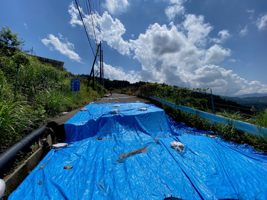 途中断層の如く道が破壊されていたので、引き返すことに、ここまで乗ってきたシェルコに手こずった様で、乗り換える。こういう道はオフ車が楽だなーと痛感。そろそろ2時近いので、飯にする、最近は普通に食事屋さんが開いてるので助かる、地元の食堂として、雰囲気のいい店があったので入るが、美味しかったのはお新香だけだった。