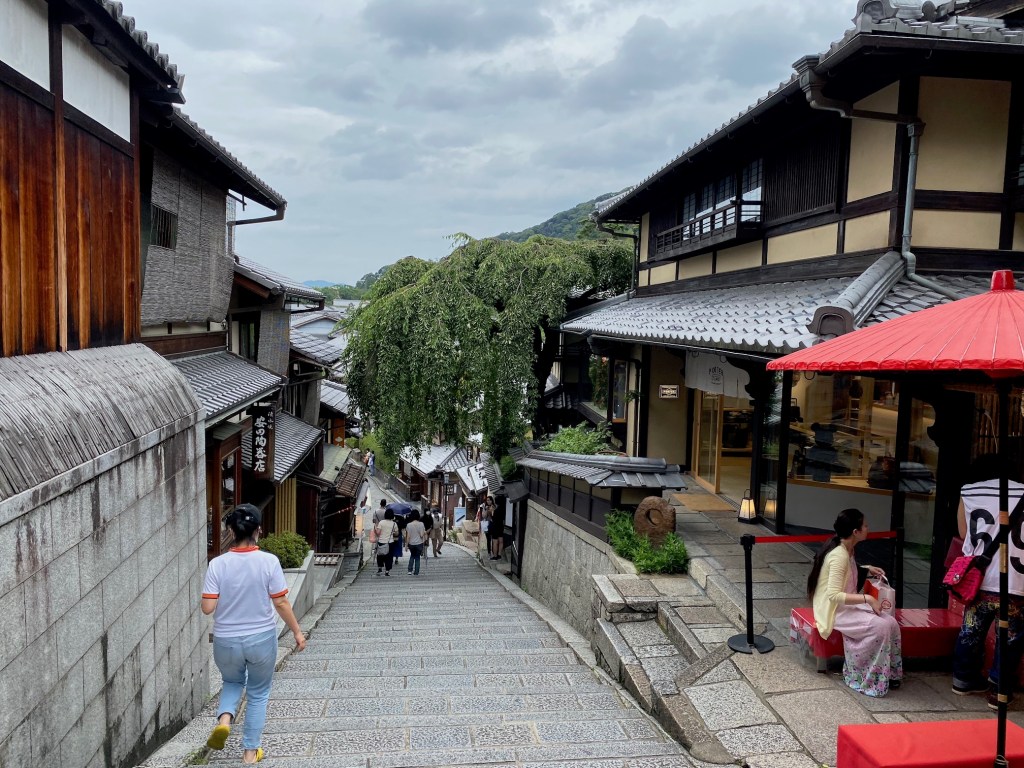 2日目はせっかく京都まで来たということで、大阪にいる友人と会う約束なんだけど、午前中は時間があるので、朝から清水寺観光とした、朝9時で早いと言うものあるけど人が少ない、コロナで清水寺休み?って心配しちゃう位だ、なぜって言うとコロナ真っ盛りの4月、東京の秘境三峰神社も休神社で入れなかったと言う、実体験があるからあり得る話だ。そんな心配もあるけど、店もまだ開店まばらな参道を進むと、清水寺だ。