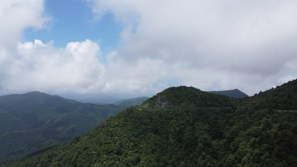 ドローンを飛ばしてみてみる、こういう時にドローンは見れない景色を提供してくれるから素晴らしい。 一方通行のワインディングを走り、眼下に見た火砕流の跡を見に行くことした。