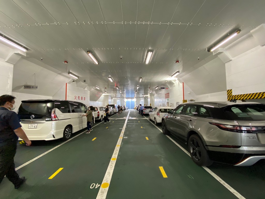 計算によれば熊本城に到着は4時55分ギリギリの入城できる筈だ。高速船の威力を見せて欲しい。あっという間に海を越えて熊本の港が見えたが、確かに30分だが着岸して車が降りるまで15分、飛行機と同じで着いてからが時間がかかる。先を急ごう。