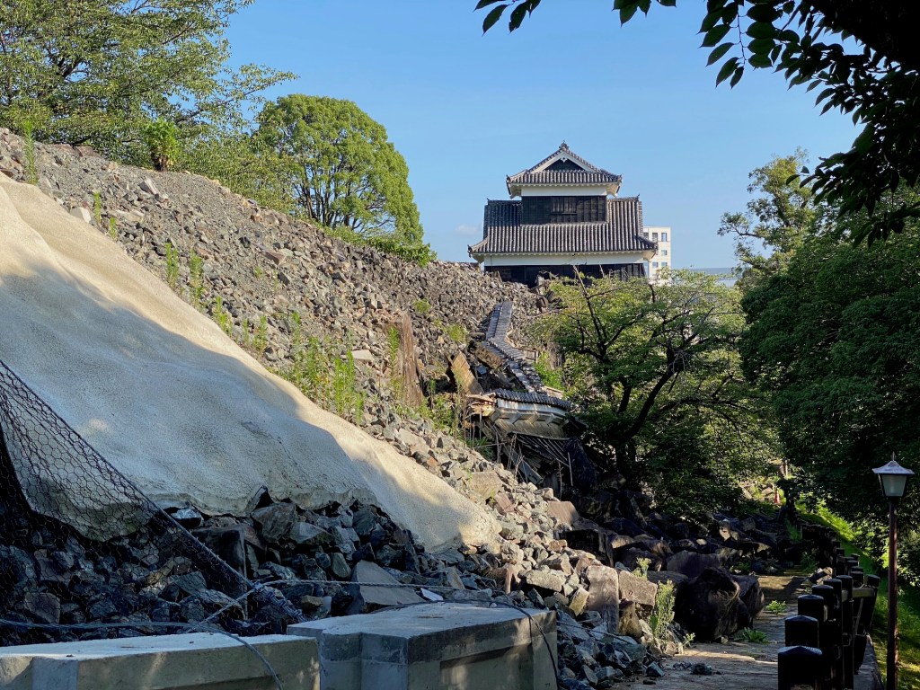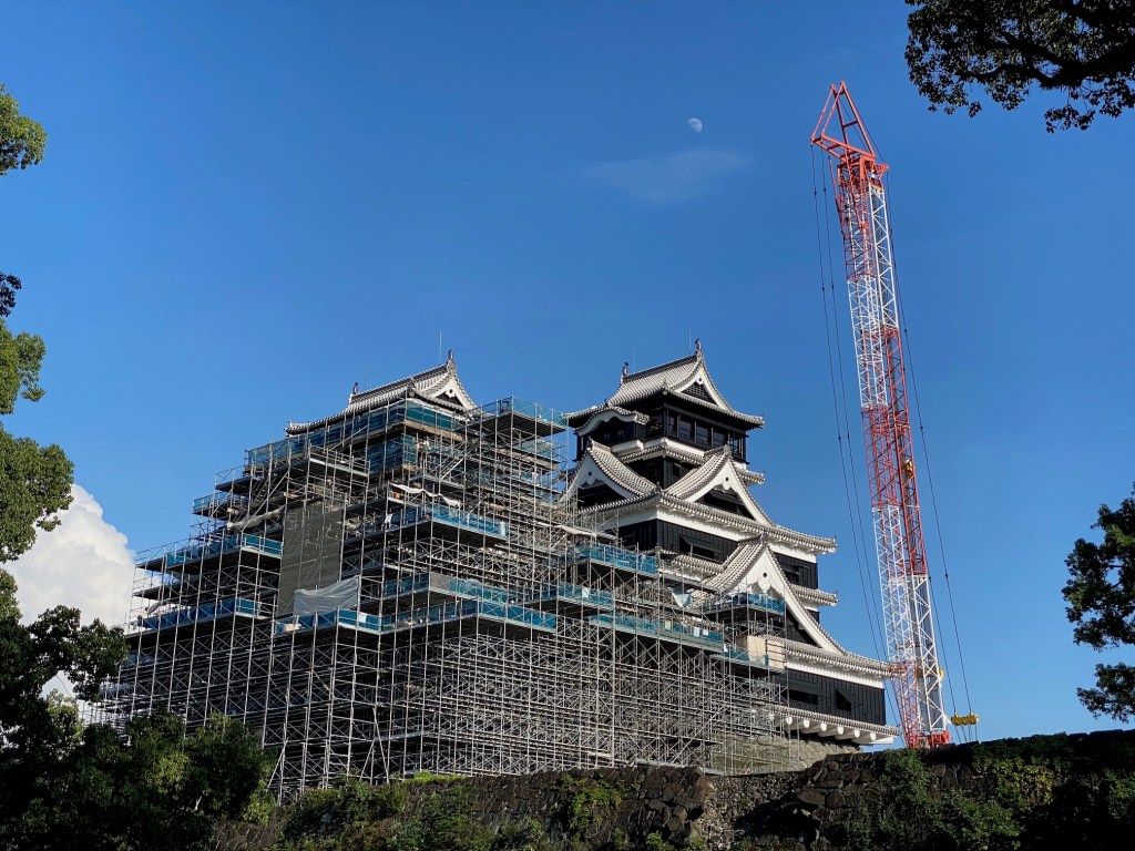 修復中の熊本城を恨めしそうに見ながら退散。あと30分早ければなんて思ったけど、土日じゃ無いと天守閣は入れないらしい。なんだそうだったのか。良いよ暑いし。一応ミッションとして宿には明るいうちに着きたいから、飯も食べず退散。次のオーベルジュに向かう。ここからはずっと下道だ。