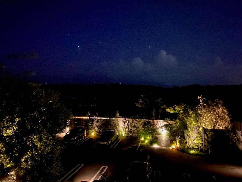 最高の食事を終えて空を見ると、遠く土星と木星が見えた。夜空に瞬く星が綺麗で、遠く熊本の街灯りも幻想的だ。温泉に入り、無音のエアコンのある静かな室内目を閉じ、城の主人もこういう子高い山のてっぺんで下界を見渡し、美味しい食事に舌鼓を打ったのだろうけど、今のこの贅沢さはあの頃100万石あってもできないと思うと、コロナであっても現在は素晴らしい。そんな事を考えてたらあっという間に眠りの世界に入ってしまった。 お疲れ様でした。
