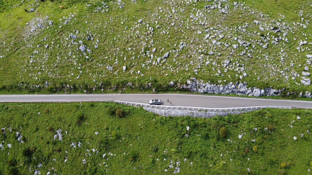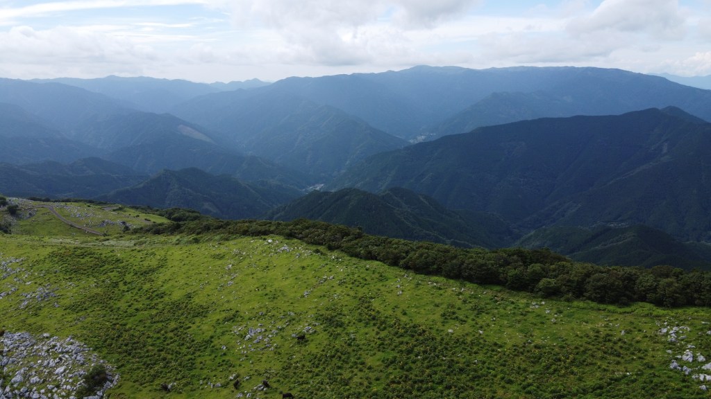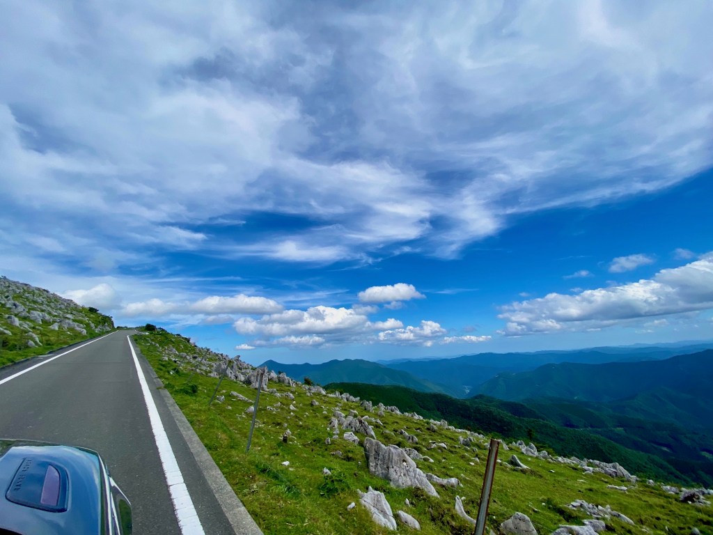 途中遭難したかと思うぐらいの酷道を走り、イノシシしかいない県道を走る。もはや狭すぎてナビもあてにならないし、360度山で、民家らしき集落も無いので、ここで何か起きたら本気で遭難だ。携帯の電波も弱く、かろうじて入るのはドコモだけだ。 対向車が来たらアウトな山道を1時間以上走り、広い道に入るとまた狭い道、これを繰り返して、写真を撮る事もなくひたすら走る。もうこうなるとラリーに参加してる様だ。レンジローバーじゃなければ諦めてた。そして山を一気にクライムするとパット開けた場所があった。3時13分着、素晴らしい。四国カルストだ。