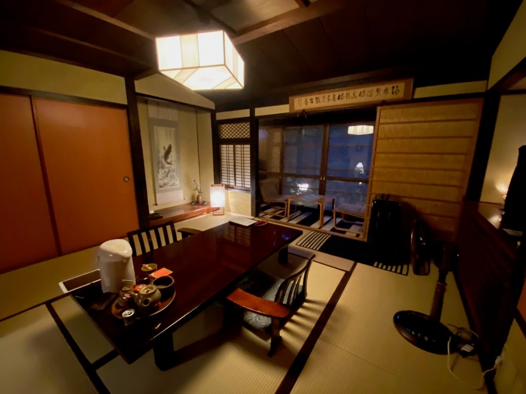 部屋は昔ながらの古い家という感じで、タイムスリップした様だ、独身の可愛らしいと思われる若女将の顔がマスクで見えないのは残念だが、そしてこういう旅館なら女将とツーショット写真でも撮りたいがマスクの女将じゃ撮る気も起きない。でも色々話ができた、歴史を守るのは大変だ。 檜風呂で汗を流して、食事の時間だ、思ったより早く着いたので、よかった。そういえばお昼も食べてないなぁ。