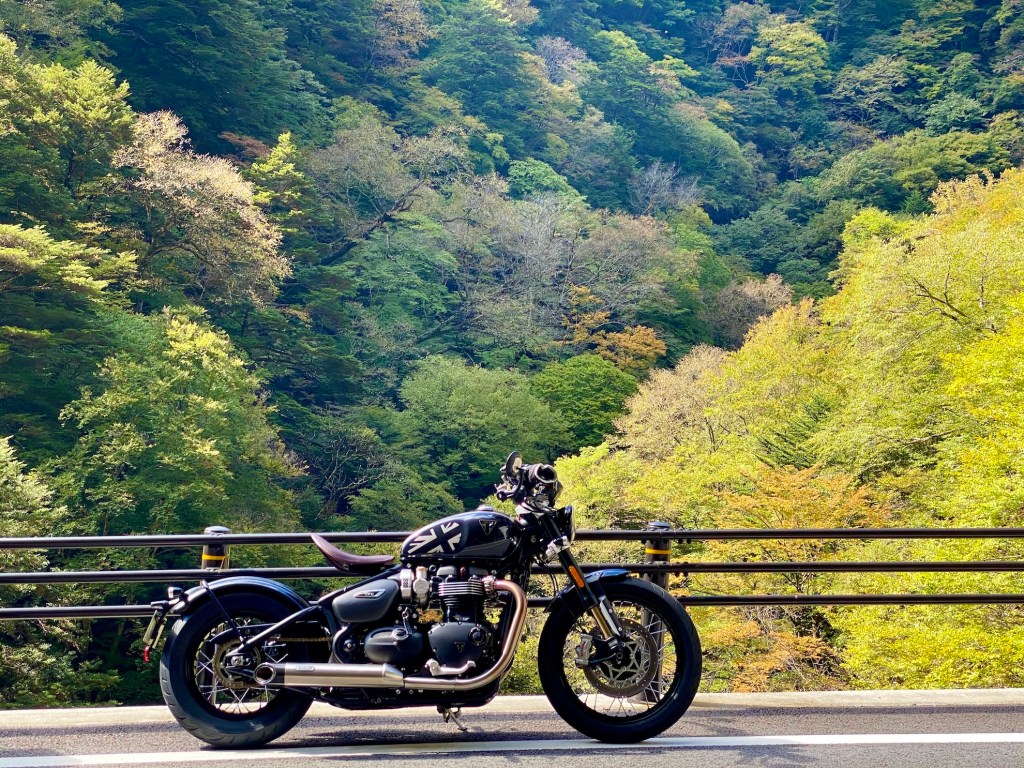 今回はボバーで紅葉の山梨長野方面にツーリングだ。 激混みの圏央道を抜けて、激混みの中央道を走り、待ち合わせの藤野パーキングへ30分遅れで到着。 ほんと車だったら2時間遅れだな。死にそう。 そこから新しく出来た談合坂出口からワインディングに入り峠に向かう。峠道に入ると紅葉し始めの木々が金色に輝いて美しい。ドコドコと低回転で素晴らしいサウンド響かせながら、コーナを抜けていくボバーは五感全てに気持ちがいい。最高である。 もう最低から最高の絶頂は相対的にそれを際立たせていて、笑いがこぼれてくるから面白い。