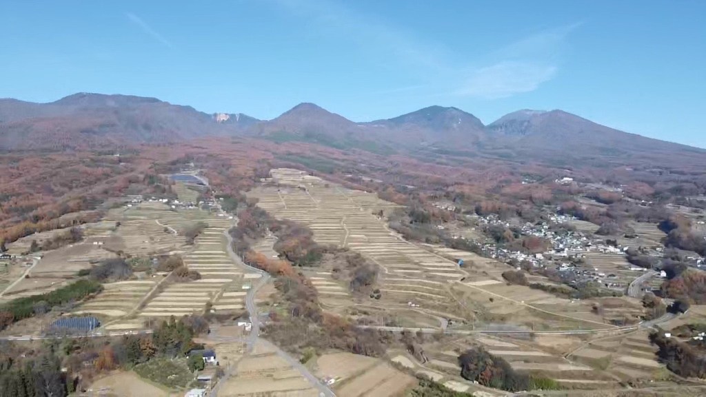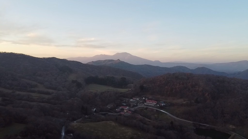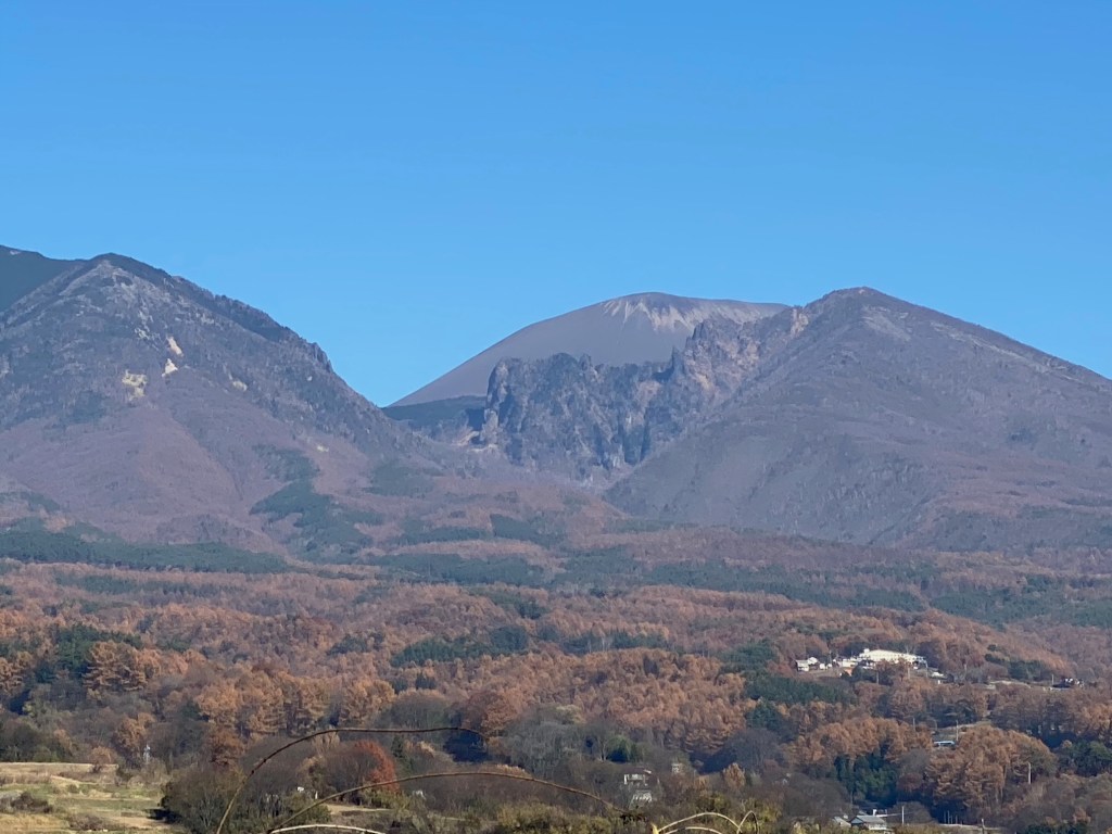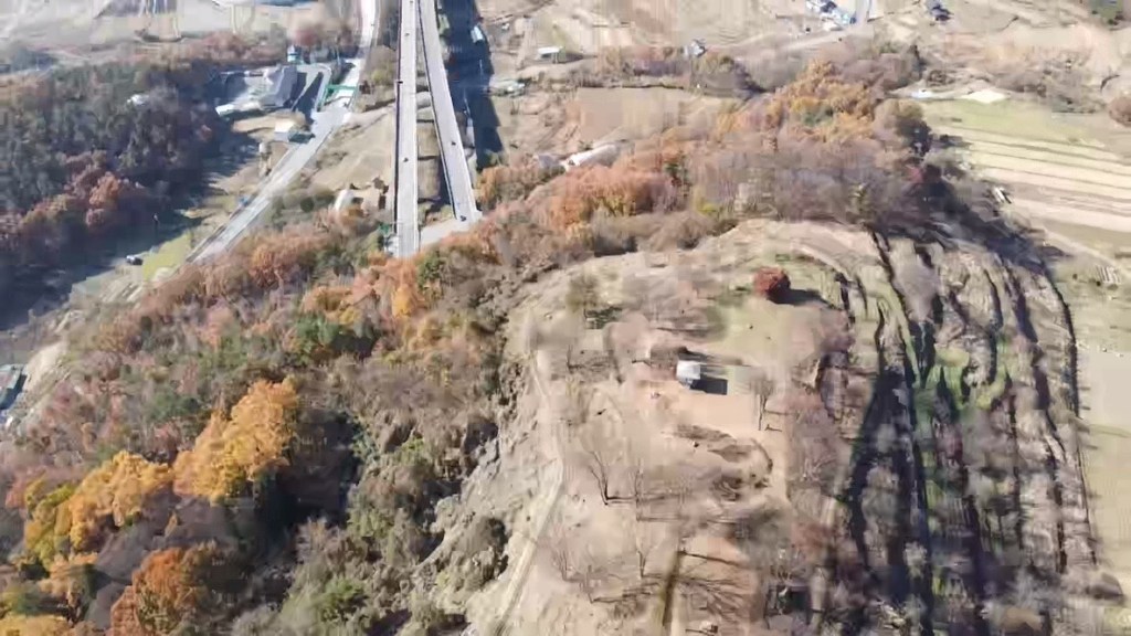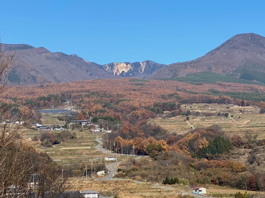 いやはや素晴らしい。絶景だし紅葉もジャスト。野生の梨も生っているし、薄く靄がかかって秋らしい。 それにしても浅間山の壁のような山は凄いな芸術的だ。 人もいないので、ここで199グラムのドローンを飛ばす。音が静かなので、近くの高速道路の音の方がうるさくて、ある意味飛んでる音が聞こえなくてよろしい。でもこんな良いところなのに、高速道路の音がうるさくて実は全く落ち着かないところだったりするのは残念だと思う。便利さの代償とは言え対策できるのだから、路面を吸音静音仕様に変えるべきだな。ほんと最低。