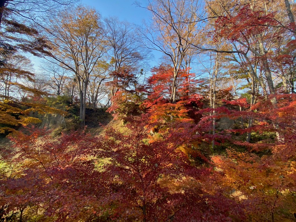 閉店ギリに間に合ってラッキ。田舎蕎麦とスタンダードな蕎麦注文。蕎麦の味はわからない派だからやっぱり歯ごたえしかわからないけど、トロロを絡めた蕎麦は中々美味しかった。アタリ。さて近くの城跡公園に行こう、今日の城跡は二ヶ所目だ。到着するとこっちは混み混み密密で、駐車場は一杯だったけど、うまく停められて、紅葉刈り。逆側から回ったおかげで、人は意外にも少なくて、ゆっくり見れた。