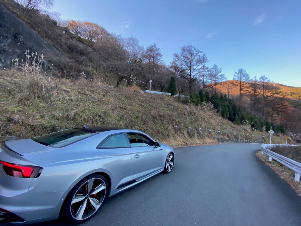 やっぱり凄い、こうなってるのね。絶景。先を急ごう。もう山間は真っ暗だが、開けるとまだ空は少しオレンジだ。車が全くいないワインディングを気持ちよく走り、到着。素晴らしい、まだ空はオレンジだよ。
