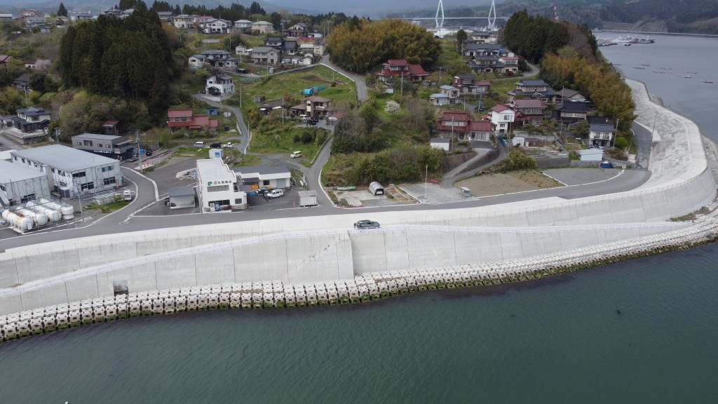 誰も住んでない土地を過剰な堤防で守る必要がありうのだろうかという疑問が湧くが、復興という名の無駄使いに見える。こんなもんが海岸線全般に作られているんだから、もうびっくり驚くしかない。過剰だしどれだけ金使ってるんだろう??