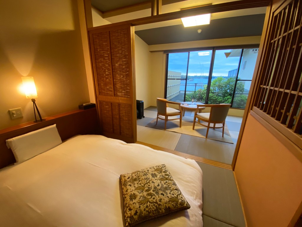 それにしても復興パワーは凄い、どさくさ紛れに津波と関係の無いところまで綺麗になっていた。 そんな気仙沼を後に、風光明媚だった碁石浜を過ぎて、今日の目的地2泊目の宮古浄土ヶ浜のホテルにまたまた無料道路で向かうことにした。 気仙沼にこんな橋いらないでしょの、復興の象徴的な自慢の橋を横目に走り、浄土ヶ浜に到着。なかなか綺麗なホテルで、部屋から見る海は絶景素晴らしい。 ここ最近では1−2を争う景色の良いホテルだ。部屋には感動したが、食事は最悪。このコロナなのにビッフェしか選べずしかもまずい。gw価格で驚くほど高いのに、レストランは全てビッフェのみ。岩手でコロナ撒き散らしのビッフェで食事とは驚きだが、その場で焼くステーキも握ってくれる寿司も不味くて最悪だ。頼みのvipルームも銀座の安いクラブみたいで、最低。温泉も人が多く露天風呂も狭いし、ここも最低。 ビールで腹一杯にしてすぐ就寝。お疲れ様でした。