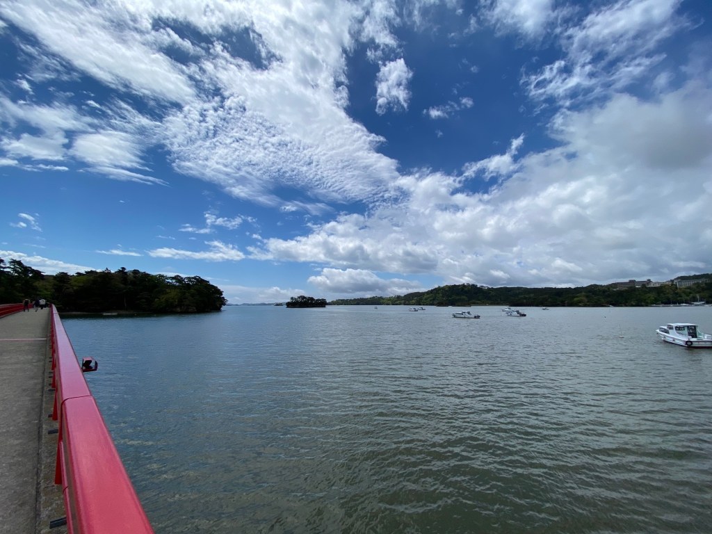 朝起きると クズってた天気は予報に反して大晴。さすが晴れ男パワーだ。部屋から見る松島は太陽が差し新緑が輝いてみえた。美味しい食事を済ませて、チェックアウト、それにしてもこのホテル海沿いなんだけど、見渡しても津波の被害があったとは思えない。 チェックアウト時ここ津波の被害なかったのと聞いたところ、全く持ってなかったのとのこと津波も前の道路に水が来ただけとのことで浸水もなし、どうなってるんだろう?たったの海抜5mだよ?あれれ津波って15mじゃなかったっけ?